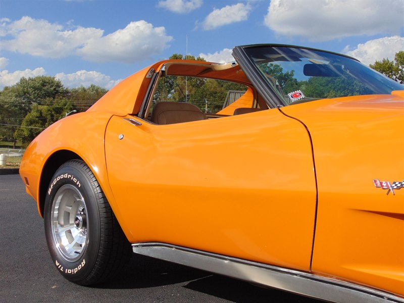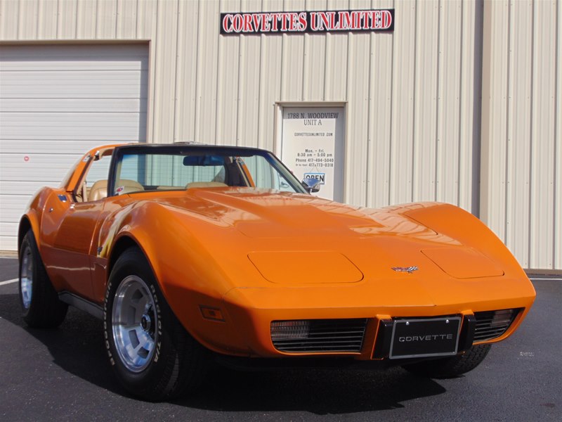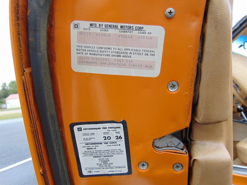 This Corvette has undergone a nice cosmetic restoration including a nice show quality repaint completed in December of 2020. We recently acquired this 1977 Corvette with only 15,160 miles. The original had passed and the widow had kept the car up until 2018 when she sold it to a gentleman in Henderson Nevada until we acquired it. The car is a two owner car and finished in Corvette Orange with Buckskin leather interior. This color really shows well on these C3 body lines and turns heads wherever you go. This was the last year to see an orange exterior color on a C3 Corvette and as well through the C4 and C5 generation. It wasn’t until the C6 models that they even offered an orange color and still is not like this one. This is a nice original “Survivor” Corvette with all of its original interior in great condition, original window glass, original front and rear urethane bumpers that have not decentegrated or cracked, and much of its original paint. The overall car is presentable and clean. We did install new BF/Goodrich Radial White Lettered T/A tires and added new aluminum 77 wheels from Corvette America. The car originally came with Rally wheels, but personally we like the look of the aluminum style, especially on these later C3 models. Much of the car is untouched. Original dated coded alternator that we had rebuilt, original exhaust system with the catalytic converter still intact, original matching numbers engine and drivetrain, original rebuilt carburetor, recent tune up with new spark plugs and serviced. The brake calipers have been replaced by the previous owner.