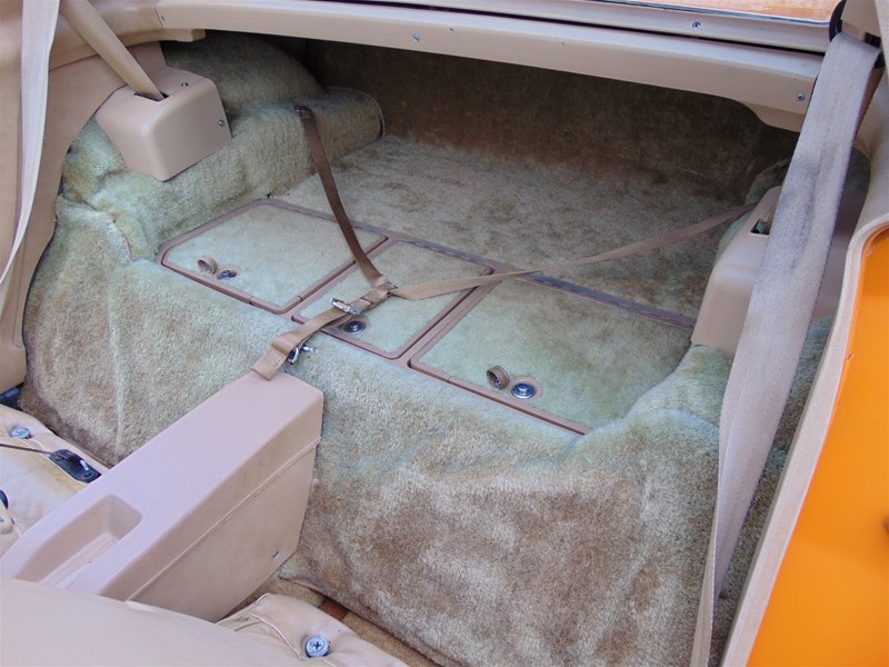 Luggage compartment behind seats and two storage chambers (one lockable for valuables), featuring increased ease of access for 1977.