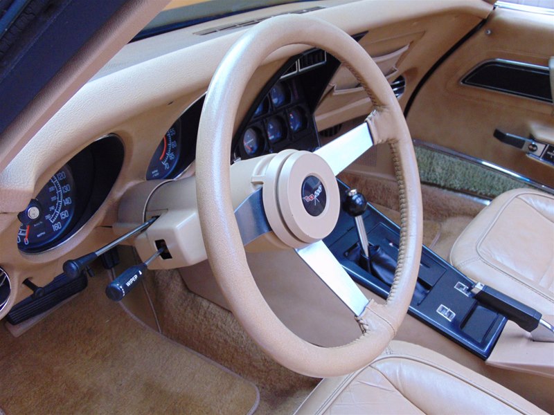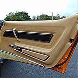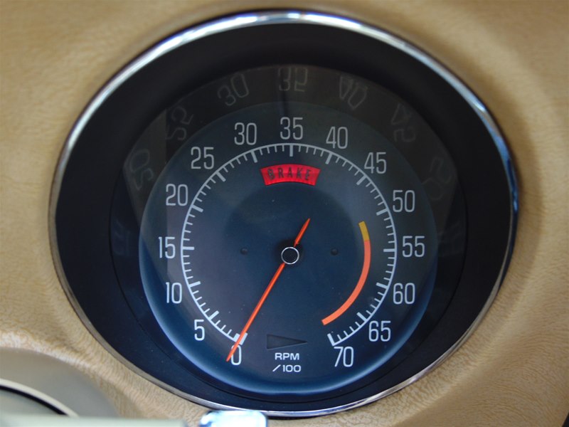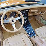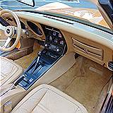 The interior is very presentable for being 42 years old. The leather seats show minimal wear and have no tears or rips. The door panels are nice and only have a couple flaws, but do not need replacing. Weatherstripping is still good but we did replace the t-top weatherstrips. The dash pad has no cracks or signs of repairs. The gauges and center cluster all look nice and fresh with crisp colored needles showing little to no fading. Seat belts are intact and the car retains its original carpeting which is amazing. The floor mats are replacements as this car was ordered without them. Yes believe it or not floor mats were an optional feature back in those days. It was a $22.00 option listed in the Black Book. All lights and gauges function with the exception of the clock, which is still a mechanical movement. Inside rearview mirror glass is excellent and not discolored as I have seen on the past on many of these models. No disappointments on the interior.