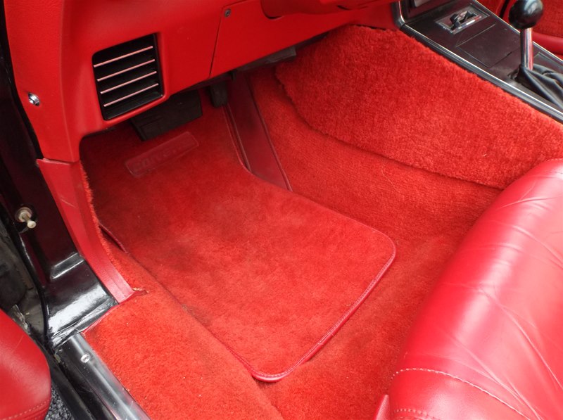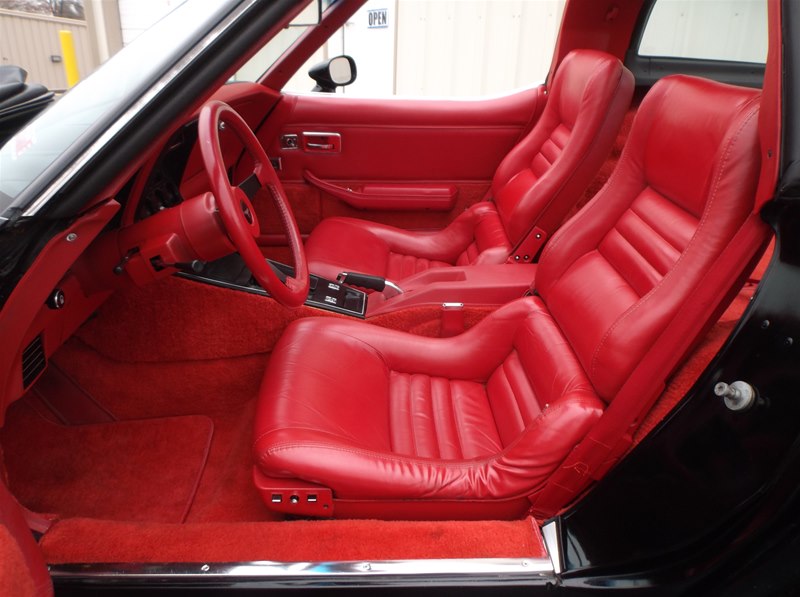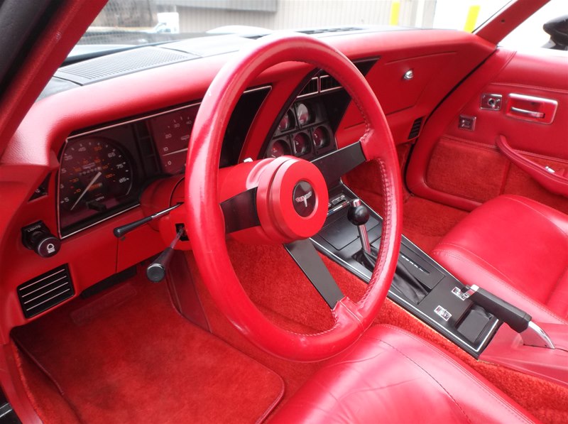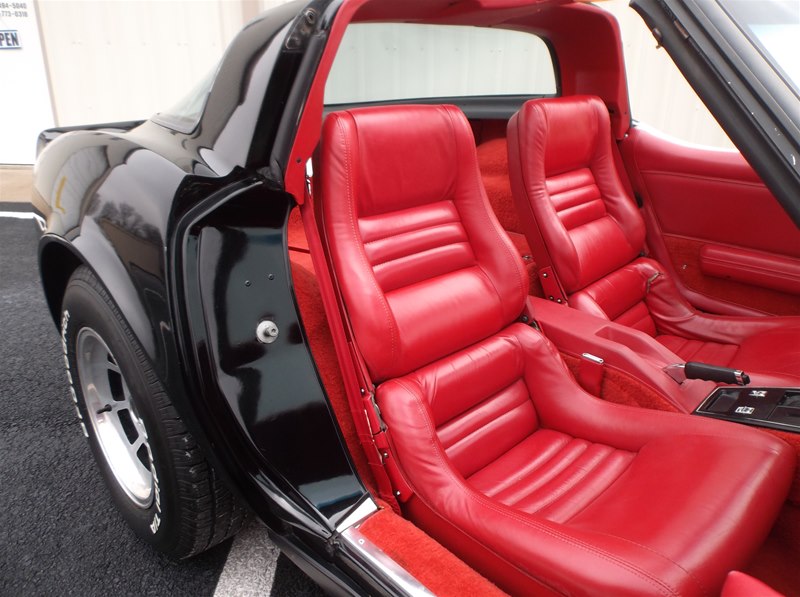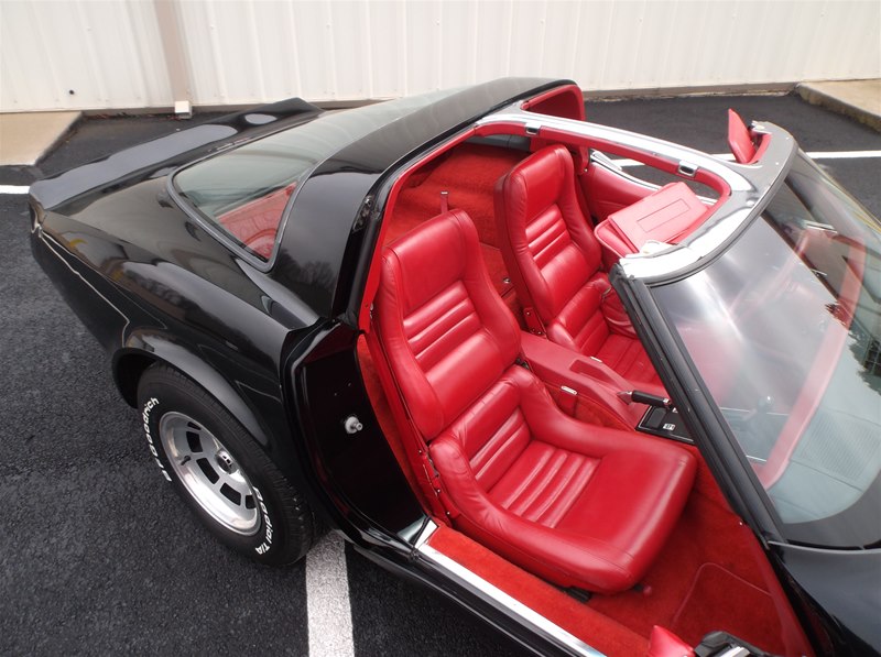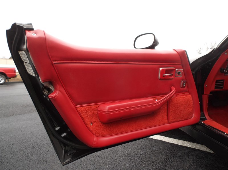 Just found this super nice and a very solid original 1981 Corvette Sport Coupe. Super rare color combination in Black exterior with Red leather interior. Only 35,230 actual miles on this car and documented with a clean CarFax vehicle history report along with odometer statements, window sticker, invoice, and owners manual. 1981 was the first year to see a 17 digit VIN # so a vehicle history report can be run on these models. This car was recently purchased out of the Chicago area as the previous owner has had about 2 years. He purchased the car from a new Chevrolet store at that time,was given an inspection on the car. All new brakes were installed along with fluids changed. Everything is operable and working on the Corvette and does drive out smoothly and like a 35,000 mile car should be. The car for the most part is an all original “Survivor” car with its original paint, interior, engine, drivetrain and undercarriage. Tires have been replaced along with the battery and some belts over the years. It does still retain things like the original alternator, exhaust system with catalytic converter, original headlight bulbs, decals, and some inspection markings are still visible. The body and frame is very good, with little surface corrosion that we plan to address and detail. What we do is get a car like this in and go through it to the best of our knowledge and try and bring it back to the condition as if it was the day it rolled off the assembly line. This car does not need much, but does have some dust and minor surface corrosion from being in a garage for much of its like. We will address those items and clean them along with refreshing any nuts and bolts to really dial the car in for a show car look. This Corvette has never been undercoated and does still look nice and presentable in all areas just like it is. The window glass is excellent and all original to the car. The front and rear urethane bumpers still look good with no stress cracking. Little to no rock nicks as well on the paint. We will give it a real nice buff and wax to bring the luster back into the paint. The wheels are nice but we will polish them out to give them that show finish. The tires have been recently replaced and are BF/Goodrich T/A ones that are white lettered. Sizes are all matching and are P225/70-R15.
