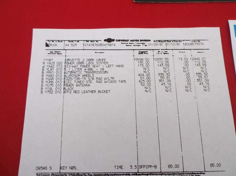 This Corvette originally listed new for $17,156.52
