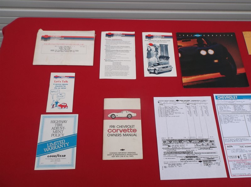 Original spare tire and wheel is still underneath this car along with the jack and lug wrench as well as the original t-top storage bags. I do have an original sales brochure that goes with the car too. About the only non-original item on this Corvette is the radio. I did just recently acquire an original Delco cassette tape radio with the digital clock, just like what would have been back in 1981. I have not yet installed it.