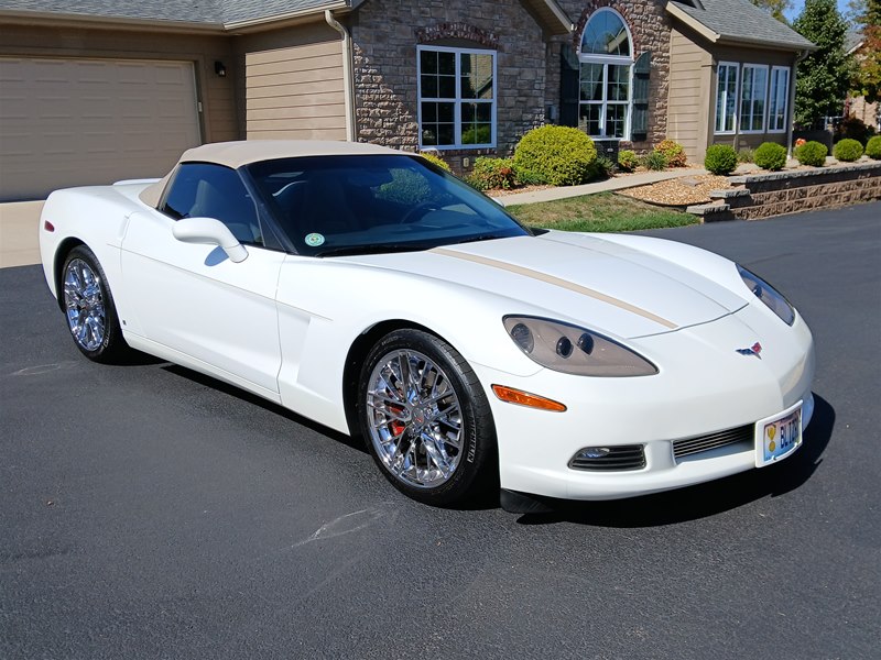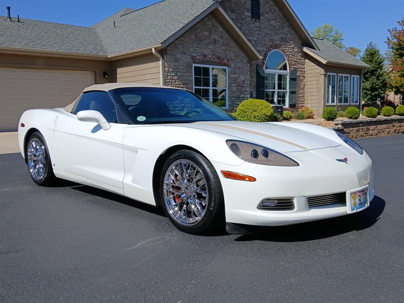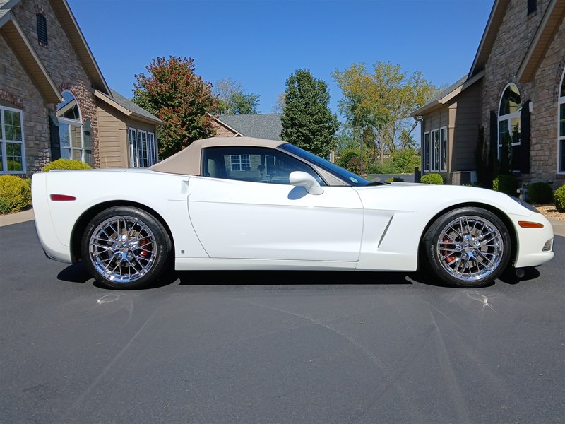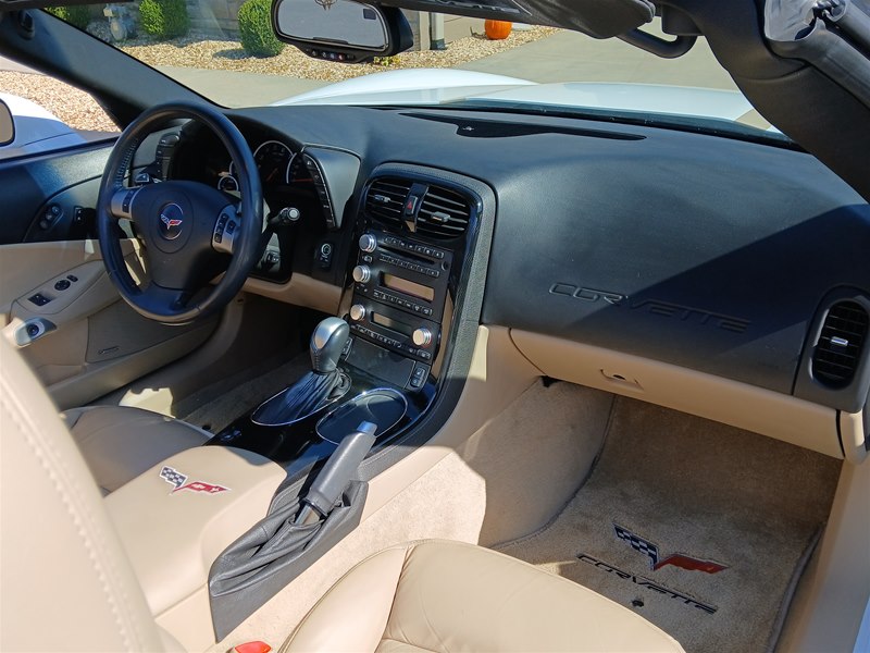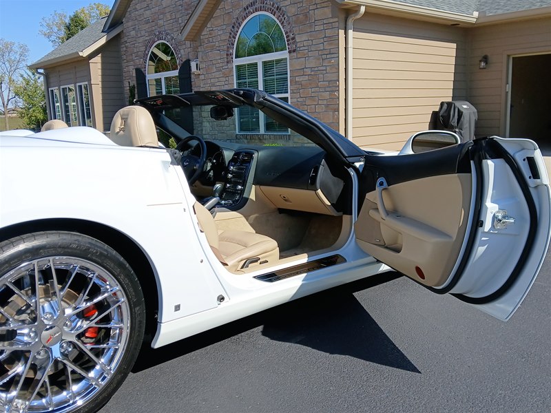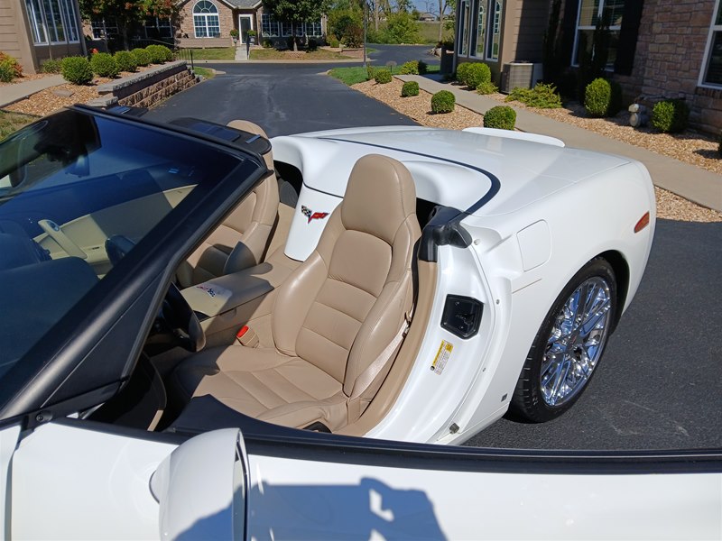 Up for sale for the first time since new is this one-owner 2009 Chevrolet Corvette Convertible. Finished in Arctic White with Cashmere leather interior, this vehicle has been in the Nixa area its entire life. Adult owner and well maintained showing 56,313 miles. The overall condition is excellent with little to no wear on the interior and the paint looks amazing. The owner had the entire front bumper wrapped in PPF “Paint Protection Film” so there really aren’t any chips or nicks in the paint. The convertible top still looks very nice and the windows have all been tinted. This car could easily pass for a 20,000 mile one as it does look that good!
