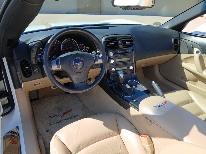 The original owner added many bolt-on accessories including a set of chrome plated ZR1 style wheels, Corsa performance cat-back bolt-on exhaust system, painted body-color door handles and the third brake light that came originally in black, chrome tail light surrounds, trunk lid liner with the C6 logo, underhood liner with the C6 logo,