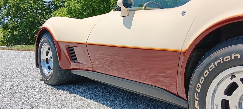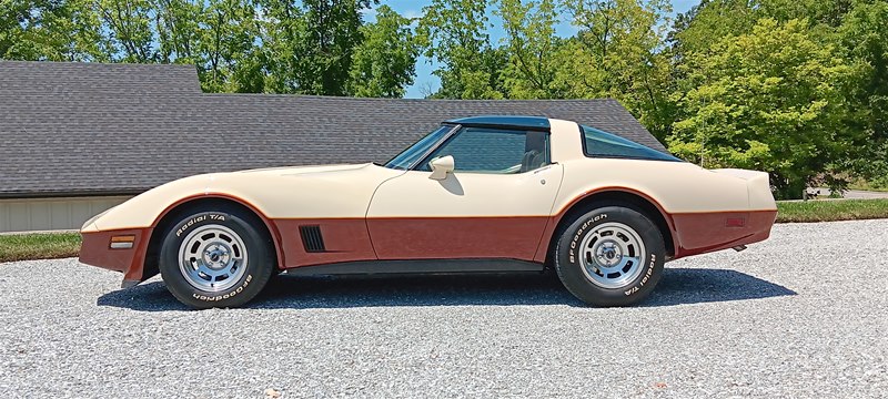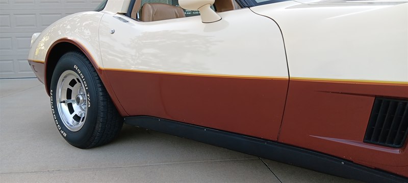 This color was called Beige/Bronze two-tone finish and was a Bowling Green built Corvette as the two-tones were and the solid color cars were still built in St. Louis at that time. The Bowling Green assembly plant was a better fit and finish than the St. Louis assembly as the two assembly plants were almost like in a friendly competition to see who could build the better Corvette at that time before the transition completely took place for the 1982 model year. This color was unique and rare thus seldom seen.