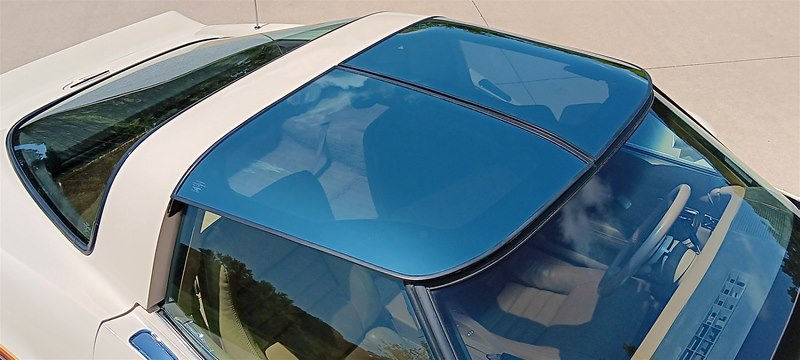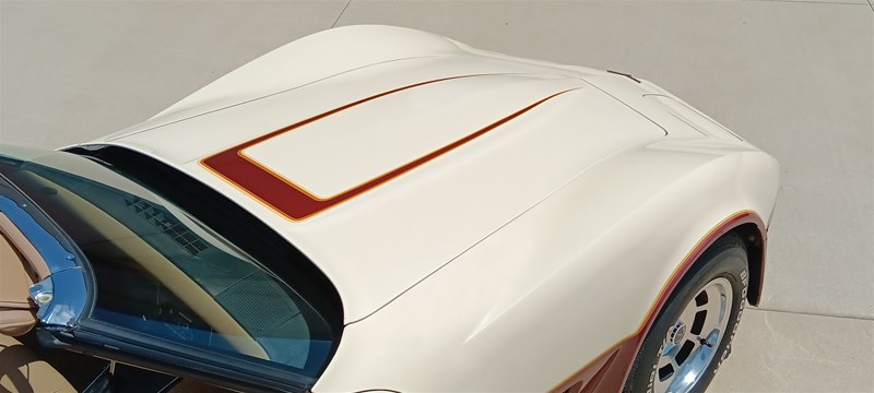 The exterior on this Corvette is about as nice as any original as you will find. All window glass is correctly date coded and as new. The removable glass t-tops are in very nice shape as well. The finish still shines well and both the front and rear bumpers are not warped or wavy from being left outside as so many have been. The weatherstripping is nice as well. The factory striping and decals on the hood are in great shape.