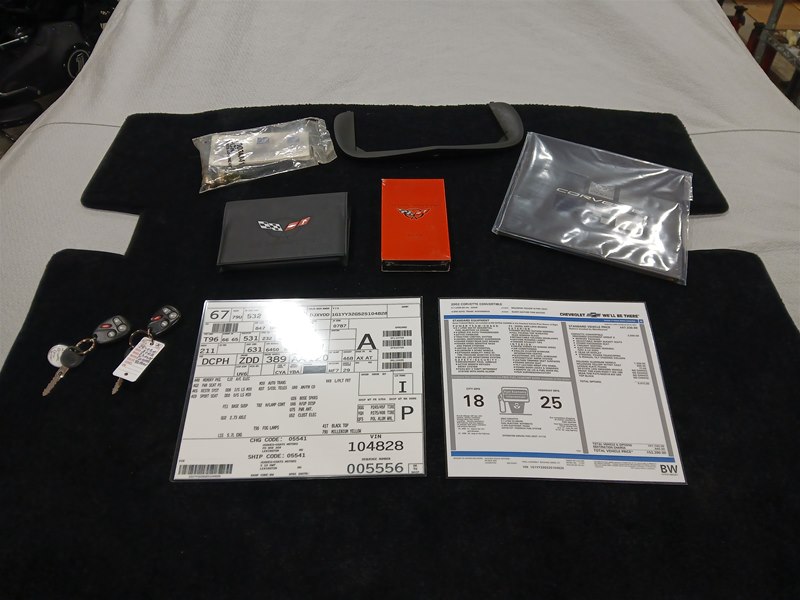 Included with the car is both sets of original keys and key fobs, the original owners manual with the original flash light and ink pen along with the sticky C5 notes intact, an original VCR Corvette 2002 Demo tape still in the plastic wrapping, the window sticker, the build sheet to this car, an original 2002 sales brochure and an original 2002 paint chip chart showing the available colors for this model year, and a clean CarFax Vehicle History Report.