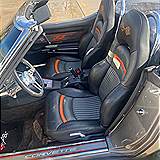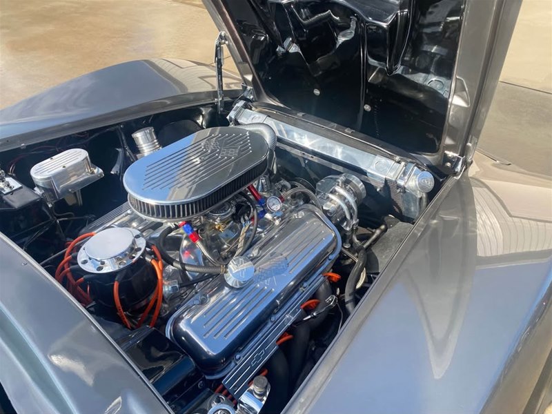 Some of the nice highlights include a GM Crate ZZ454 Big Block Engine with Aluminum Oval Port Heads, Tremec 5-Speed Manual Transmission, Vintage Air Conditioning, Custom C5 Generation leather seats, Hooker Side Mount exhaust system, new cloth convertible soft top, custom stereo, polished aluminum custom wheels with performance radial tires, custom stinger style hood, custom white faced instruments, custom leather wrapped steering wheel, tilt steering column, power windows, chrome roll bars behind the seats, engine compartment dressed with many chrome and polished aluminum parts, custom aluminum radiator, polished aluminum master cylinder, four-wheel disc brakes, custom dark charcoal exterior paint with black interior and orange accents.