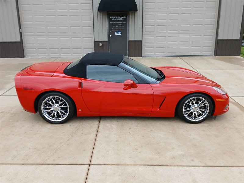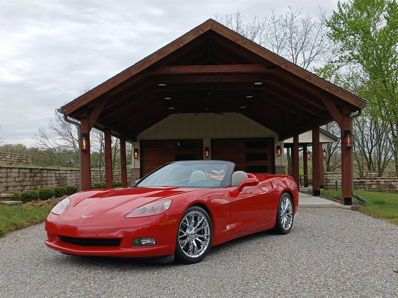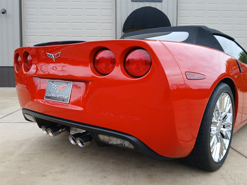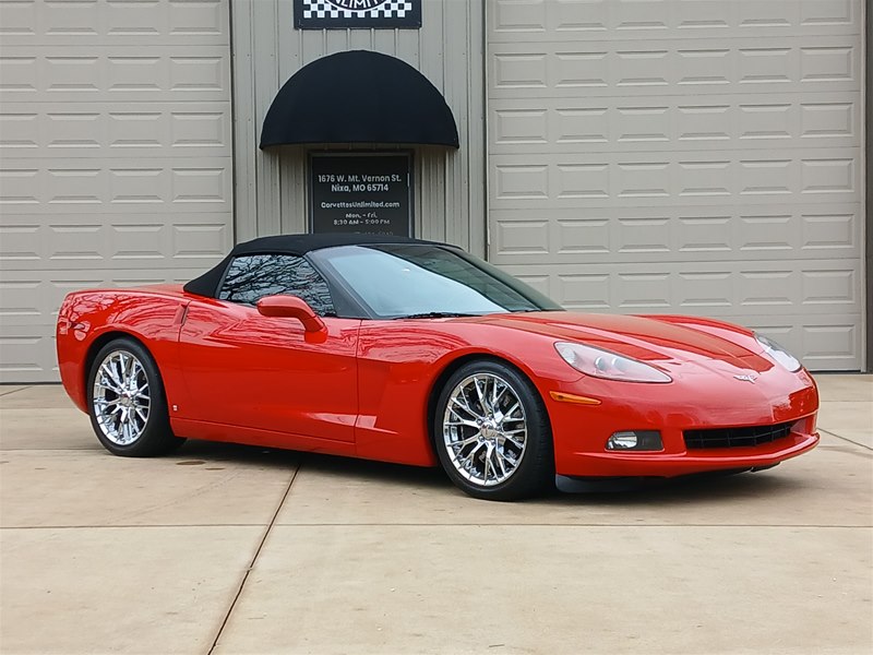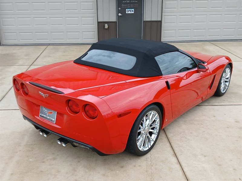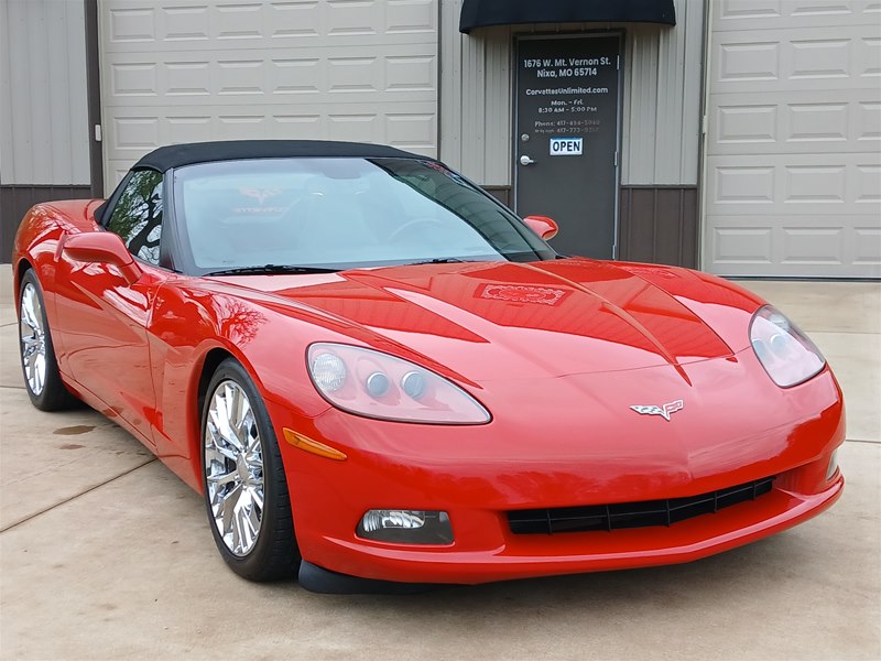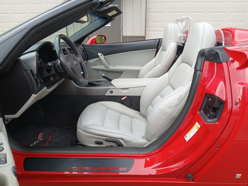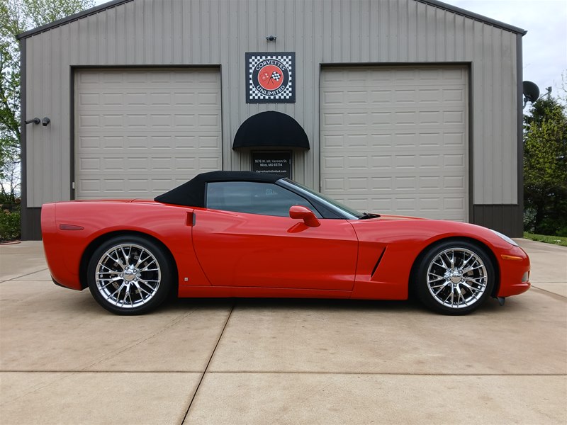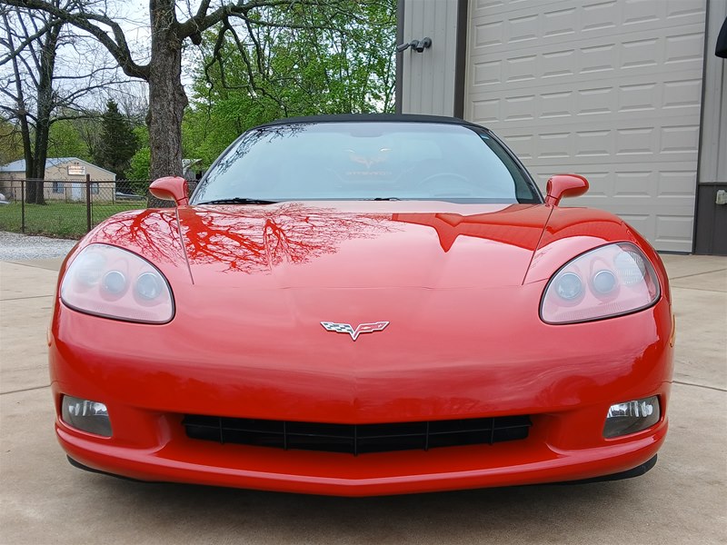 Another nice low-mileage C6 Corvette up for sale. This 2006 model has only 25,569 actual miles and was owned by an older, retired gentleman whom kept the car in excellent shape and maintained the car very well. The Corvette is finished in Victory Red with Titanium Gray/Black leather interior and a black cloth canvas soft top that is in near- perfect condition. This Corvette was optioned with the 3LT package, power convertible soft top, Z51 performance package, AM/FM CD/DVD Navigation radio, automatic with paddle shifters, and chrome wheels. The car features the 6.0L LS2 400 HP V8 Fuel-Injected Engine and a 6-Speed Paddle-Shift automatic transmission. The overall condition is very good, and the paint was recently ceramic-coated at a cost of $1,395, done locally in Springfield, Missouri. The paint and trim are all nice, and the window glass has no chips or nicks as well. The only known issue that I see is that the headlight lenses are starting to show some aging, as commonly seen on the C6 models, as the 2005 model was the first year to see the exposed headlights since 1962. The engine and drivetrain are all stock and original, as well as the stock original exhaust system.