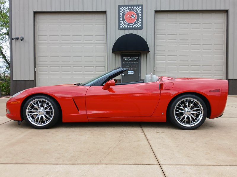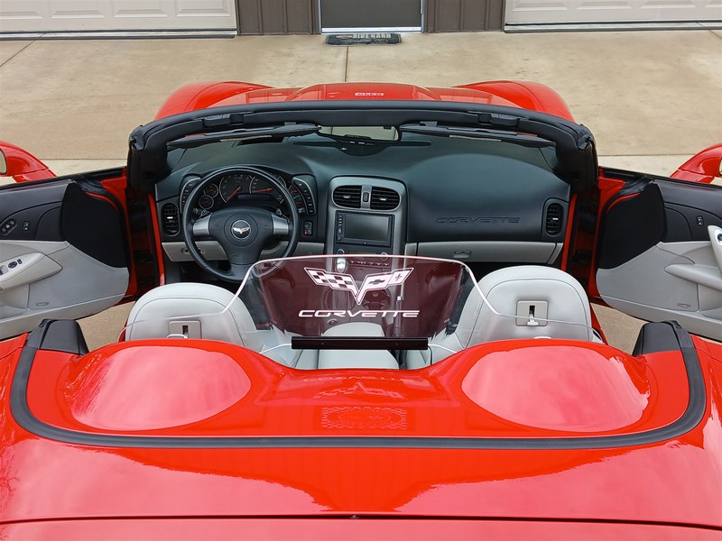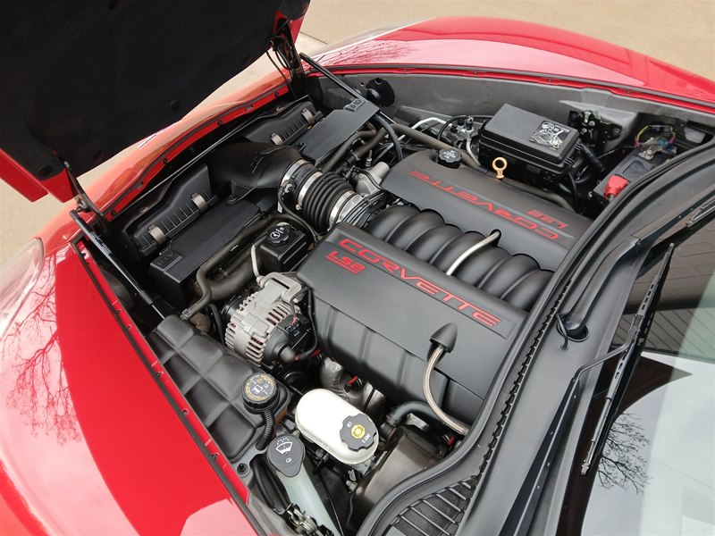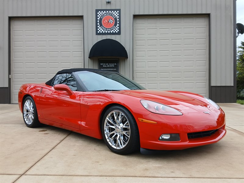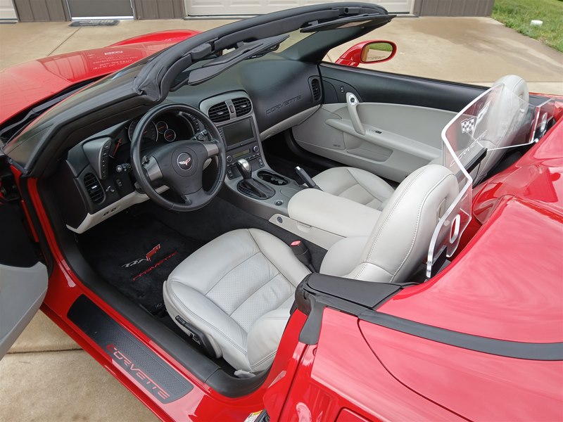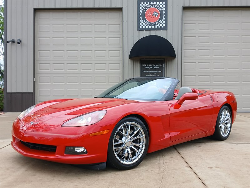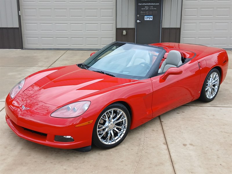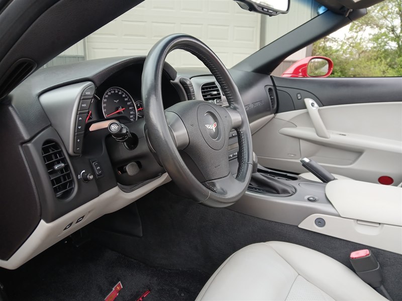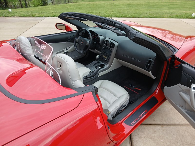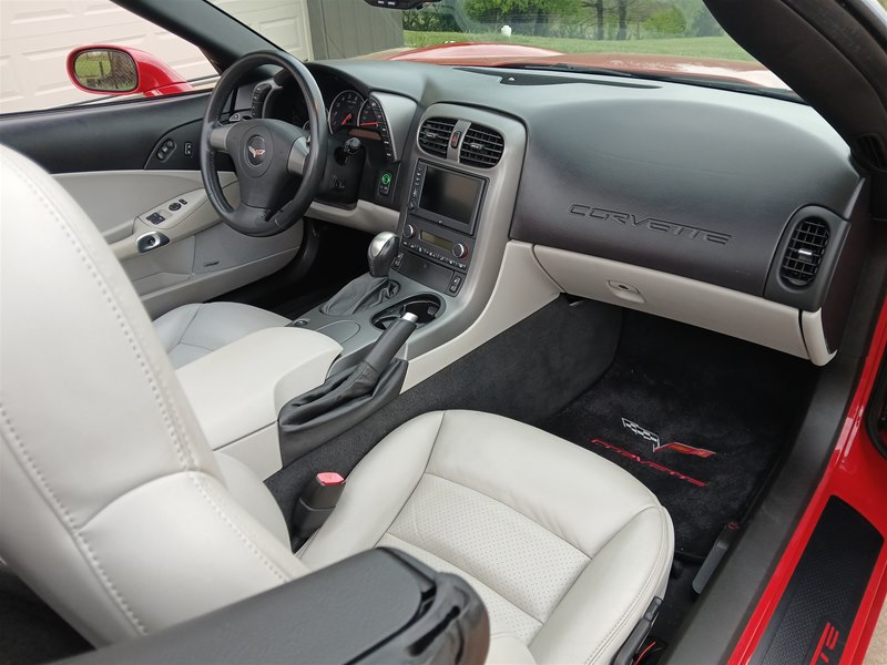 Another nice low-mileage C6 Corvette up for sale. This 2006 model has only 25,569 actual miles and was owned by an older, retired gentleman whom kept the car in excellent shape and maintained the car very well. The Corvette is finished in Victory Red with Titanium Gray/Black leather interior and a black cloth canvas soft top that is in near- perfect condition. This Corvette was optioned with the 3LT package, power convertible soft top, Z51 performance package, AM/FM CD/DVD Navigation radio, automatic with paddle shifters, and chrome wheels. The car features the 6.0L LS2 400 HP V8 Fuel-Injected Engine and a 6-Speed Paddle-Shift automatic transmission. The overall condition is very good, and the paint was recently ceramic-coated at a cost of $1,395, done locally in Springfield, Missouri. The paint and trim are all nice, and the window glass has no chips or nicks as well. The only known issue that I see is that the headlight lenses are starting to show some aging, as commonly seen on the C6 models, as the 2005 model was the first year to see the exposed headlights since 1962. The engine and drivetrain are all stock and original, as well as the stock original exhaust system.