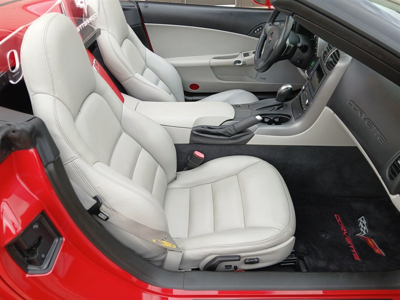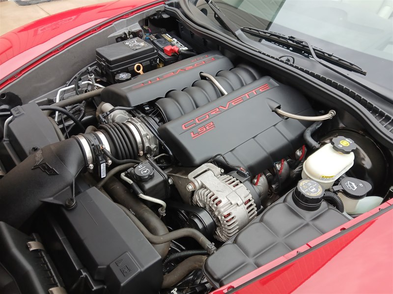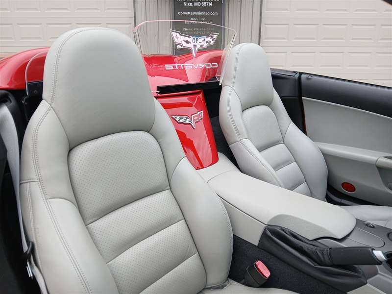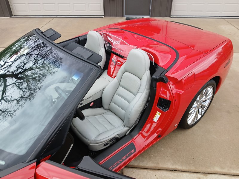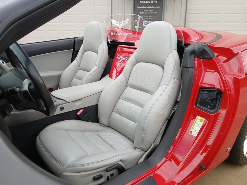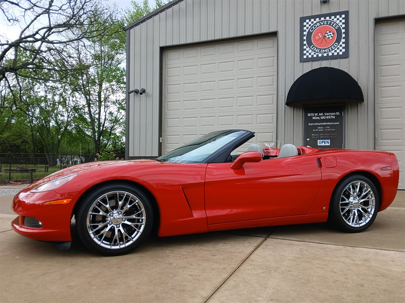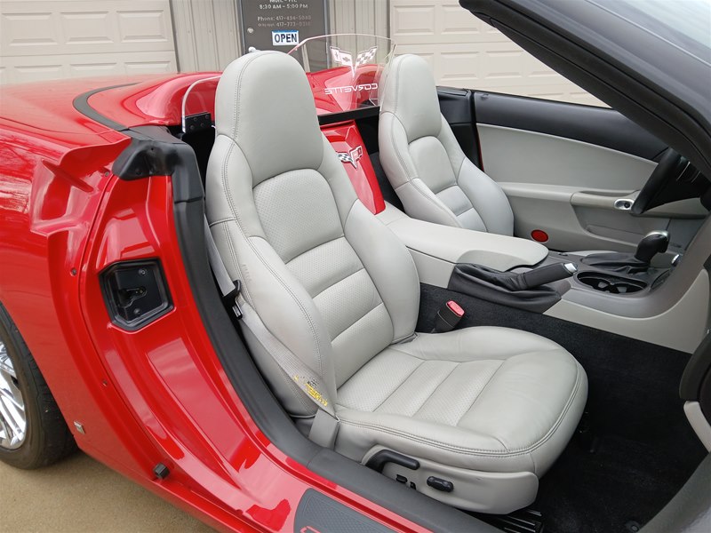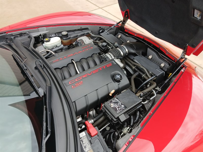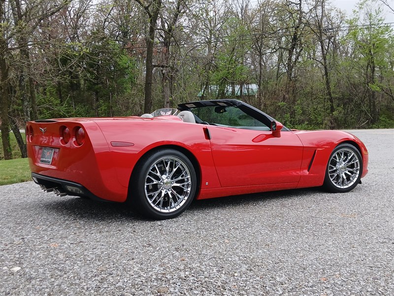 Another nice low-mileage C6 Corvette up for sale. This 2006 model has only 25,569 actual miles and was owned by an older, retired gentleman whom kept the car in excellent shape and maintained the car very well. The Corvette is finished in Victory Red with Titanium Gray/Black leather interior and a black cloth canvas soft top that is in near- perfect condition. This Corvette was optioned with the 3LT package, power convertible soft top, Z51 performance package, AM/FM CD/DVD Navigation radio, automatic with paddle shifters, and chrome wheels. The car features the 6.0L LS2 400 HP V8 Fuel-Injected Engine and a 6-Speed Paddle-Shift automatic transmission. The overall condition is very good, and the paint was recently ceramic-coated at a cost of $1,395, done locally in Springfield, Missouri. The paint and trim are all nice, and the window glass has no chips or nicks as well. The only known issue that I see is that the headlight lenses are starting to show some aging, as commonly seen on the C6 models, as the 2005 model was the first year to see the exposed headlights since 1962. The engine and drivetrain are all stock and original, as well as the stock original exhaust system.