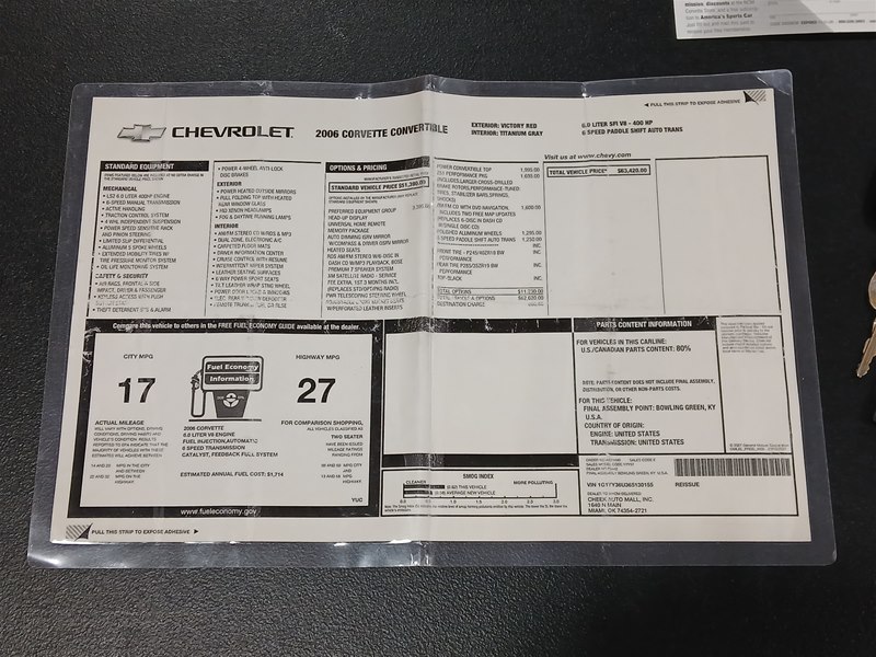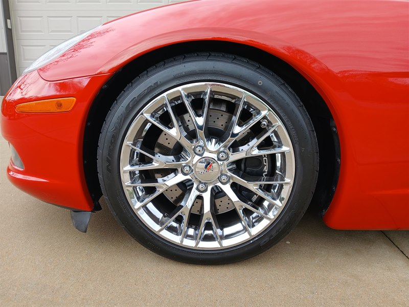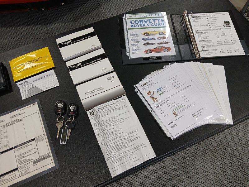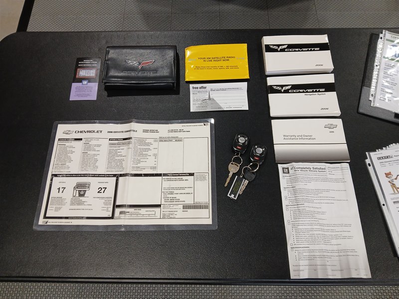 Included with the sale of this Corvette is the original window sticker, original owner’s manual, a convertible top operation card, Navigation disc, clean CarFax Vehicle History Report, service records and receipts, and both sets of key fobs and keys. The car does come with a nice car cover and two sets of floor mats. The original ones and a nice set of Lloyd carpeted floor mats with the C6 logo. The harmonic balancer was replaced in August of 2024, and all fluids were changed in late 2025, including the brake fluid and anti-freeze coolant. The chrome wheels are a nice upgrade as they are the ZR1 style and look great on this car. The tires have also been replaced with a set of Nitto brand ones, in the correct sizes that came on the car when new.