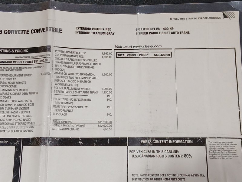 The optional Z51 Performance Package, which this Corvette has, includes more content than the previous generation. The cost was $1,695.00 and included higher spring rates and shocks, larger sway bars, larger cross-drilled brake rotors; engine oil, transmission, and power steering fluid coolers.