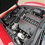For the C6 models came a new 4th-generation Chevy small block, the 400-hp LS2. Displacement increased from 346ci (5.7L) to 364ci (6.0L). Torque increased to 400 Foot-pounds. The Ls2 had numerous refinements, including increased camshaft lift, a higher compression ratio (10.9:1), lighter exhaust manifolds and a wingless aluminum oil pan that improved oil control during high G-force driving while reducing oil capacity from 6.5 to 5.5 quarts with filter. Redline for the LS2 was 6500rpm, compared to LS1’s 6000rpm.