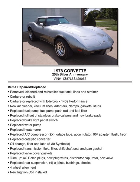 1978 marked the 25th Anniversary of the Corvette, and in doing so, several changes occurred, and two special edition models were introduced. The Pace Car replicas and the Silver Anniversary two-tone paint that was an actual $399.00 option.