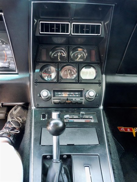 The 1978 interior was redesigned significantly. The speedometer and tachometer were redone in a more square, vertical model. A glove box was added. Inner door panels were completely new and featured screwed-on armrests instead of the molded-in style common to Corvettes since 1965. Windshield wiper and washer controls were moved back to the instrument panel, but the dimmer remained on the steering column. The center console, redone for 1977, essentially carried over.