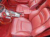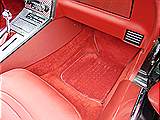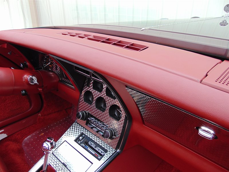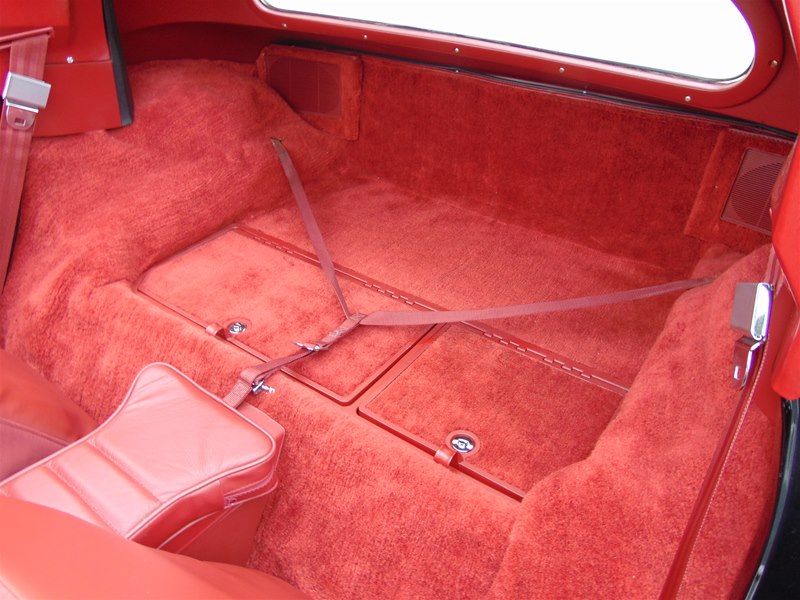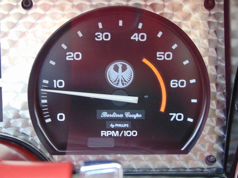 The interior for the most part is also original to the car and is in “Like New’ condition. The carpeting, door panels, and dash assembly is all original including the instruments where you can see the “Berlina” logo. The car has no odor nor has ever been smoked in. We did remove the original seats and installed these newer ones you see out of a 1999 model C5 Corvette. They were already finished in Firethorn Dark Red color that was only used from 1997-1999. The color matches almost perfectly as you can see and they are more comfortable and sit better than those stock original ones. The seats have little to no wear on them. We did have the driver’s side power seat switch fixed up like the original one so it simply unplugs if ever needed to remove it. The entry and exit of the vehicle is also much easier with these seats and they both have the nice Corvette logo plus gives those that don’t have a clue that it just might be a Corvette. The seat bracket attachments came from Mid America Motor Works so these seats do fit like factory. We also installed the nice wood grained steering wheel, engine turn aluminum accents on the dash trim, center console, gauge cluster and the glovebox door. This added touch does give it that 1930’s era where you would have seen something similar on those model of vehicles. The original dash trim accents were of wood grain finish and we did still save those original pieces along with the original leather wrapped Corvette style steering wheel and those items do go with the car. The original horn button with the Berlina logo did work nicely with that wood wheel that we installed. The rear carpeting along with all of the front carpeting is as new condition. We did purchase a set of new carpeted floor mats that match and do have nice clear floor mat covers over them when driving. Another nice touch is we added on the side console covers that extend all the way back running on both sides of the console, done in nice dark red leather. The original sides of the console were all carpeted and we did save those but it looks much nicer done in leather. We also chrome plated the striker latches on the door jambs, chrome plated the door sill plates, and added clear protective covers over the carpet to help from scuff marks or damage to the carpet from entry and exit. These clear covers have been dyed the dark red color on the back side so they will never scratch. Just several of the many nice accents and touches we did to this Berlina to set it apart from others. The glass and all the trim around the windows is excellent and original to the car. No discoloration at all. All of the gauges are nice and crisp with no fading or dust behind the lenses. It has been kept inside and only driven on occasion.