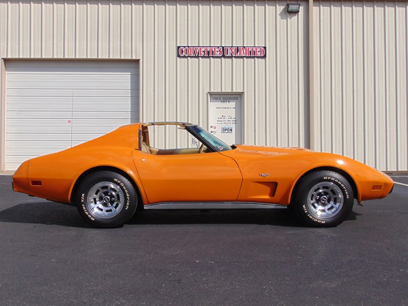 This Corvette has undergone a nice cosmetic restoration including a nice show quality repaint completed in December of 2020. We recently acquired this 1977 Corvette with only 15,160 miles. The original had passed and the widow had kept the car up until 2018 when she sold it to a gentleman in Henderson Nevada until we acquired it. The car is a two owner car and finished in Corvette Orange with Buckskin leather interior. This color really shows well on these C3 body lines and turns heads wherever you go. This was the last year to see an orange exterior color on a C3 Corvette and as well through the C4 and C5 generation. It wasn’t until the C6 models that they even offered an orange color and still is not like this one. This is a nice original “Survivor” Corvette with all of its original interior in great condition, original window glass, original front and rear urethane bumpers that have not decentegrated or cracked, and much of its original paint. The overall car is presentable and clean. We did install new BF/Goodrich Radial White Lettered T/A tires and added new aluminum 77 wheels from Corvette America. The car originally came with Rally wheels, but personally we like the look of the aluminum style, especially on these later C3 models. Much of the car is untouched. Original dated coded alternator that we had rebuilt, original exhaust system with the catalytic converter still intact, original matching numbers engine and drivetrain, original rebuilt carburetor, recent tune up with new spark plugs and serviced. The brake calipers have been replaced by the previous owner.