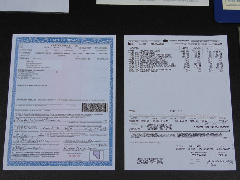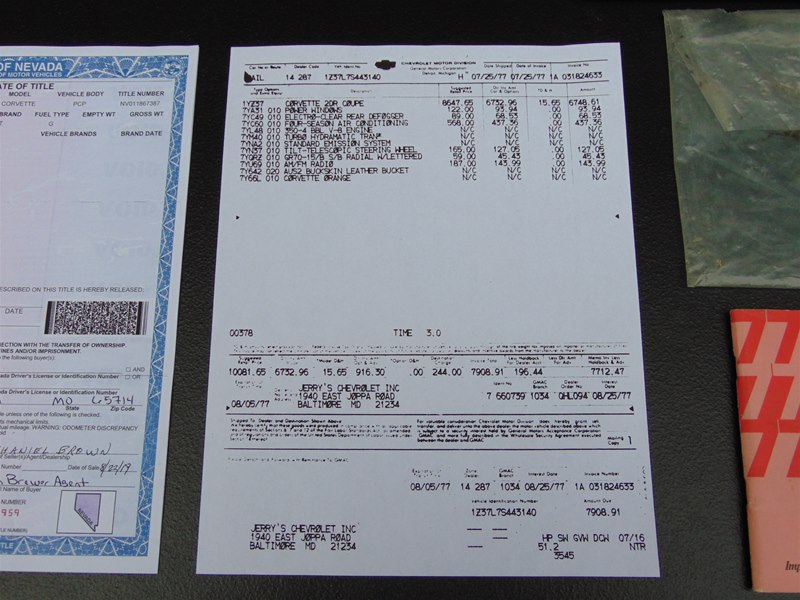 Included with this Corvette is a copy of the original dealer invoice, window sticker, original owners manual, sales brochure, assembly manual, t-top storage bags, original jack and lug wrench, original spare tire intact, original spare tire lock, previous owner history, signed odometer statement by the second owner, original consumer information brochure, original sunvisor tag, and a InstaVin Vehicle History Report.