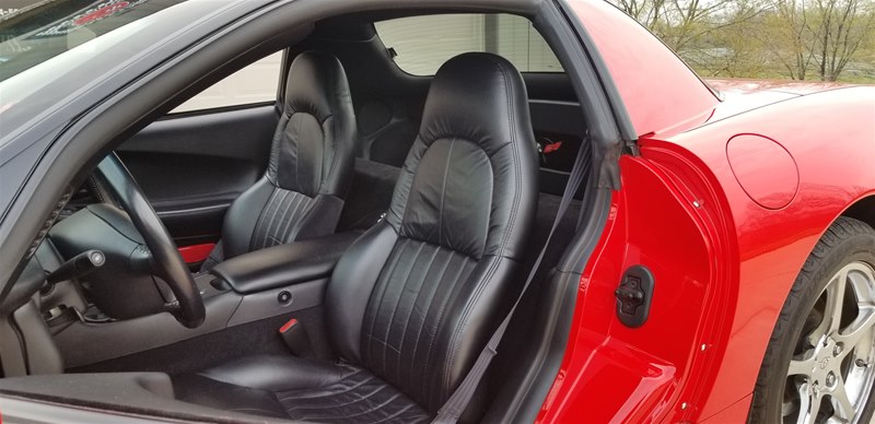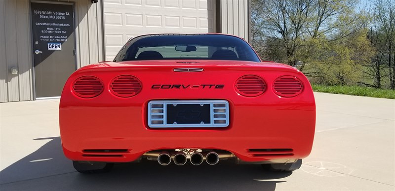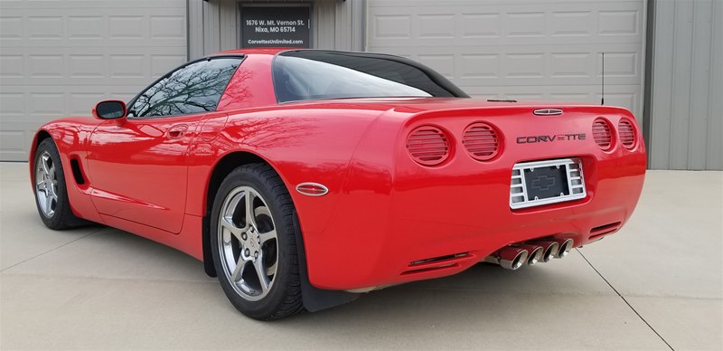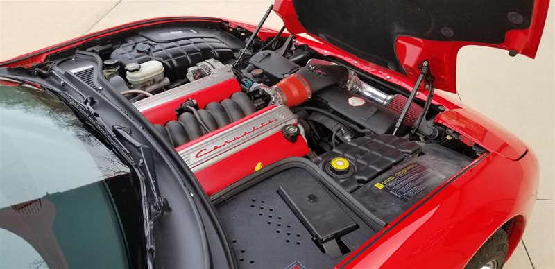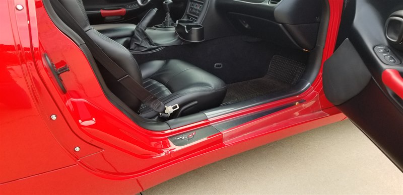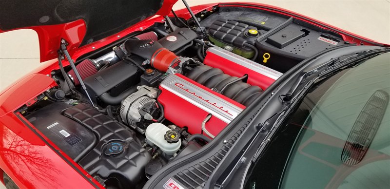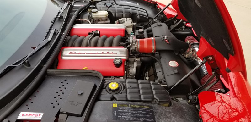 The previous owner added the nice polished stainless steel Corsa Performance Exhaust System which gives the car a little more aggressive sound. He also added a few bolt-on accessories such as the nostalgic fuel rail covers, cold air intake, custom tail light covers, and a polished aluminum license plate frame. He protected the door sills with those clear plastic protectors and had clear floor mats over the original carpeted mats. All of these accessories can easily be removed if desired and the original air filter setup is included as well as the original painted aluminum wheels that came on the car when new.