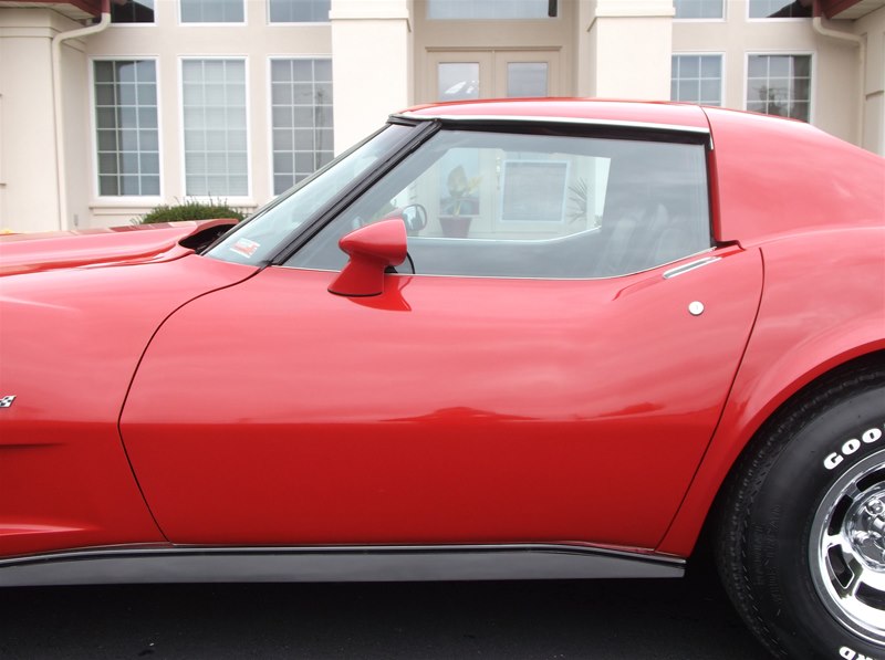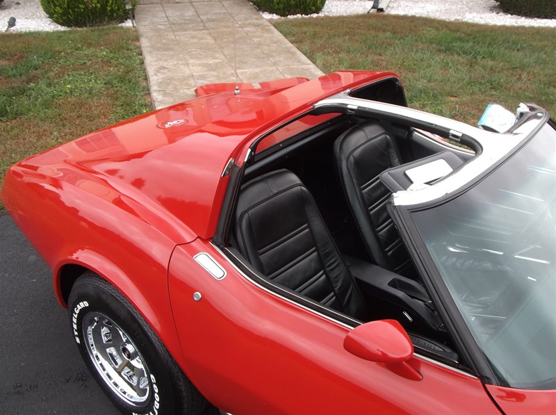 The paint on this Corvette shows well. Both the original front and rear bumpers are original and have no cracking nor warping as commonly seen on an original car. The body is original and the paint shows well. The car is 48 years old so it is expected to show some flaws but are minimal. All of the original window glass is in excellent condition with no scratches or scuff markings. The T-Tops fit very nice as well. The emblems all look nice and fresh with no fading or evidence or wear. Again, I cannot stress enough as to how this car was taken care of and preserved.