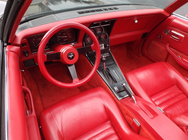 Just found this super nice and a very solid original 1981 Corvette Sport Coupe. Super rare color combination in Black exterior with Red leather interior. Only 35,230 actual miles on this car and documented with a clean CarFax vehicle history report along with odometer statements, window sticker, invoice, and owners manual. 1981 was the first year to see a 17 digit VIN # so a vehicle history report can be run on these models. This car was recently purchased out of the Chicago area as the previous owner has had about 2 years. He purchased the car from a new Chevrolet store at that time,was given an inspection on the car. All new brakes were installed along with fluids changed. Everything is operable and working on the Corvette and does drive out smoothly and like a 35,000 mile car should be. The car for the most part is an all original “Survivor” car with its original paint, interior, engine, drivetrain and undercarriage. Tires have been replaced along with the battery and some belts over the years. It does still retain things like the original alternator, exhaust system with catalytic converter, original headlight bulbs, decals, and some inspection markings are still visible. The body and frame is very good, with little surface corrosion that we plan to address and detail. What we do is get a car like this in and go through it to the best of our knowledge and try and bring it back to the condition as if it was the day it rolled off the assembly line. This car does not need much, but does have some dust and minor surface corrosion from being in a garage for much of its like. We will address those items and clean them along with refreshing any nuts and bolts to really dial the car in for a show car look. This Corvette has never been undercoated and does still look nice and presentable in all areas just like it is. The window glass is excellent and all original to the car. The front and rear urethane bumpers still look good with no stress cracking. Little to no rock nicks as well on the paint. We will give it a real nice buff and wax to bring the luster back into the paint. The wheels are nice but we will polish them out to give them that show finish. The tires have been recently replaced and are BF/Goodrich T/A ones that are white lettered. Sizes are all matching and are P225/70-R15.