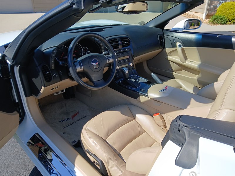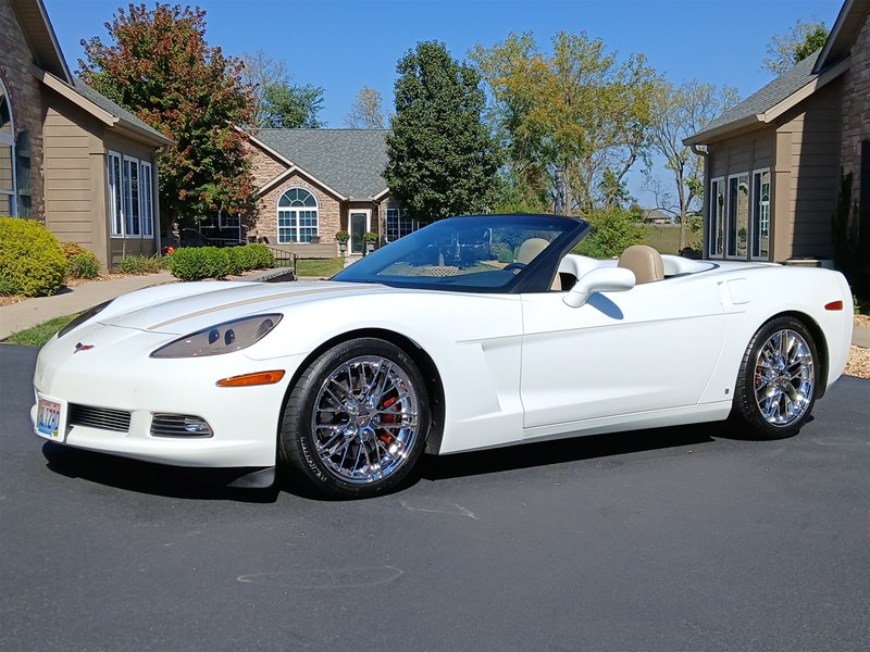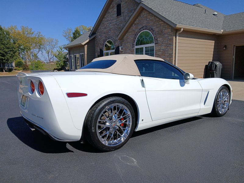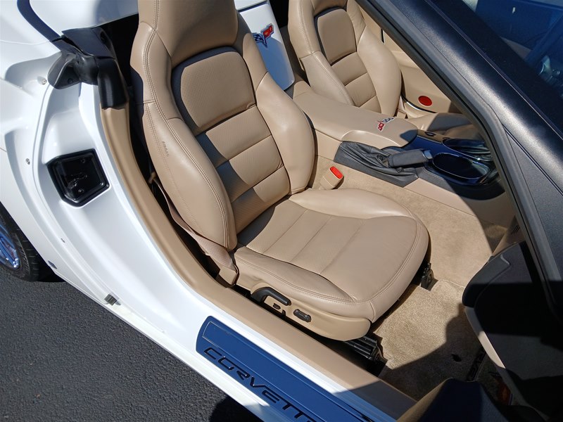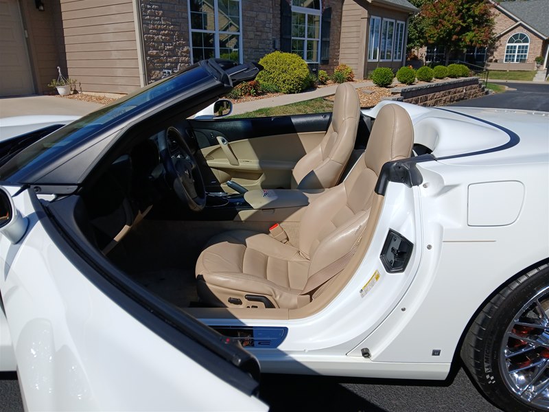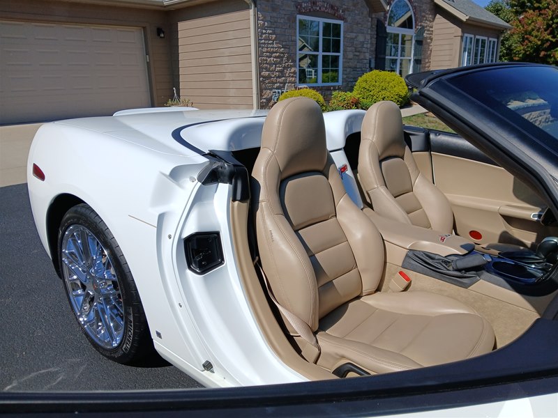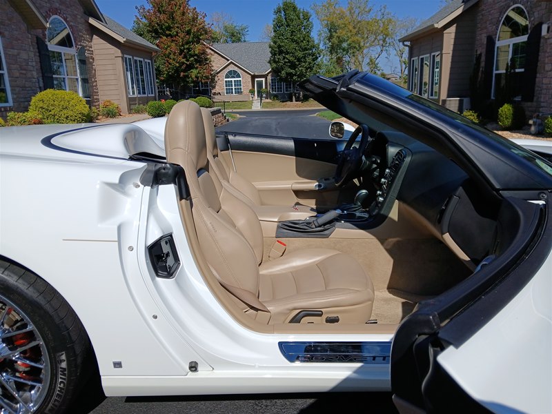 Up for sale for the first time since new is this one-owner 2009 Chevrolet Corvette Convertible. Finished in Arctic White with Cashmere leather interior, this vehicle has been in the Nixa area its entire life. Adult owner and well maintained showing 56,313 miles. The overall condition is excellent with little to no wear on the interior and the paint looks amazing. The owner had the entire front bumper wrapped in PPF “Paint Protection Film” so there really aren’t any chips or nicks in the paint. The convertible top still looks very nice and the windows have all been tinted. This car could easily pass for a 20,000 mile one as it does look that good!