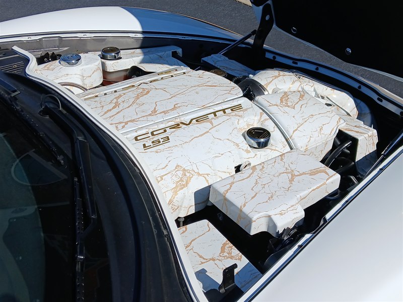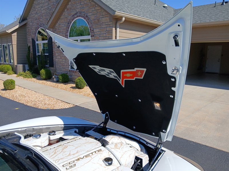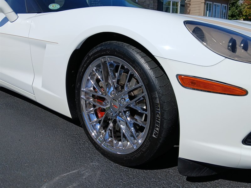 The original owner added many bolt-on accessories including a set of chrome plated ZR1 style wheels, Corsa performance cat-back bolt-on exhaust system, painted body-color door handles and the third brake light that came originally in black, chrome tail light surrounds, trunk lid liner with the C6 logo, underhood liner with the C6 logo,