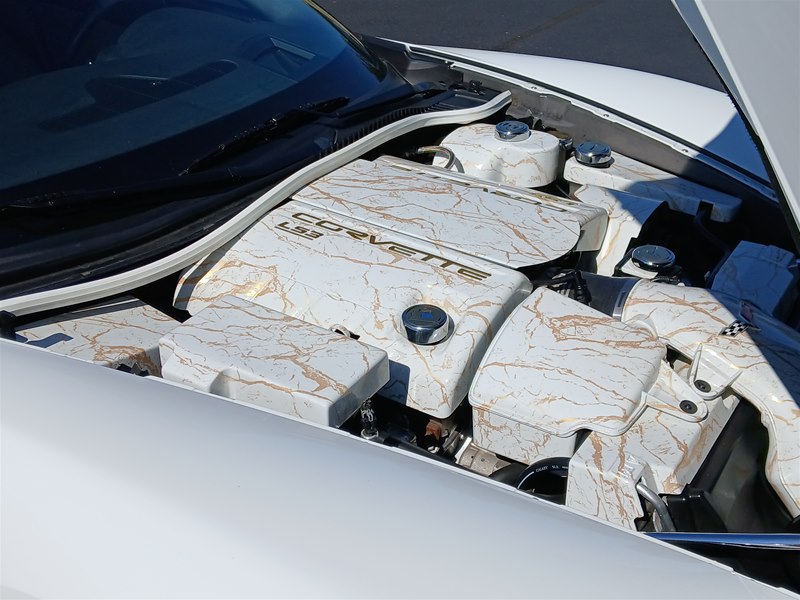 Chrome strut rods for the trunk and hood, chrome trunk latches, Lloyd custom floor mats, stainless steel door sill plates, red painted brake calipers, pinstriping, tinted headlight covers, stainless steel grill insert, custom front mounted license plate without any drilling of holes in the bumper like the factory setup was, several custom painted engine accessories such as the fuel rail covers, coolant recovery tank cover, and much more! Much of these accessories can be removed and put back stock with not a lot of effort if the buyer desires. No engine modifications at all and the engine and drivetrain is all stock except for the performance exhaust system. There is literally too much to list and I know I likely have left some accessories out.