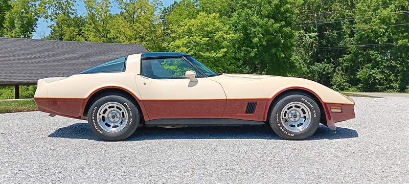 This color was called Beige/Bronze two-tone finish and was a Bowling Green built Corvette as the two-tones were and the solid color cars were still built in St. Louis at that time. The Bowling Green assembly plant was a better fit and finish than the St. Louis assembly as the two assembly plants were almost like in a friendly competition to see who could build the better Corvette at that time before the transition completely took place for the 1982 model year. This color was unique and rare thus seldom seen.