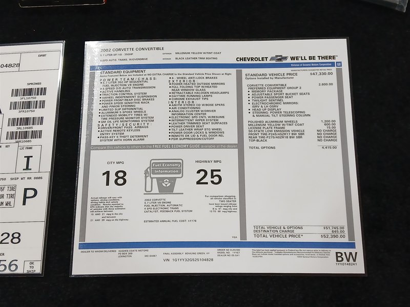 This Corvette was optioned with the Corvette Preferred Equipment Group 2.