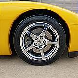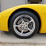 The original polished aluminum wheels on this car are still in nice condition with new Goodyear Eagle Exhilarate ZR rated tires installed back in 2024. There are very few miles on these tires.